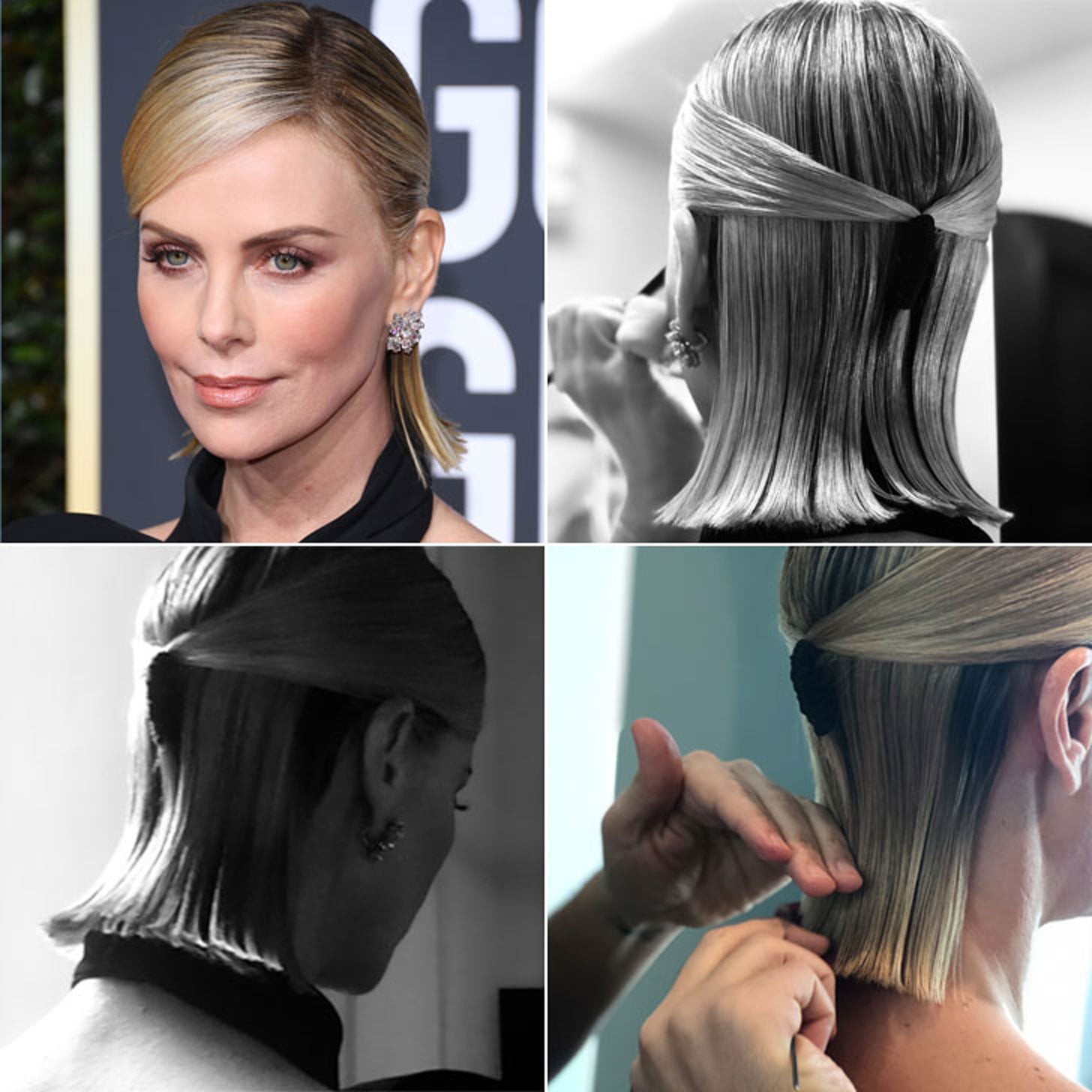Web Charlize Therons Hairstylist Cut Colored and Styled Her Hair in Rapid Time for the Golden Globes This was truly Gods work. Web See pictures and shop the latest fashion and style trends of Charlize Theron including Charlize Theron wearing Ponytail Long Braided Hairstyle Layered Cut and more. The actress rocked her short haircut and a fabulous velvet frock for the event.